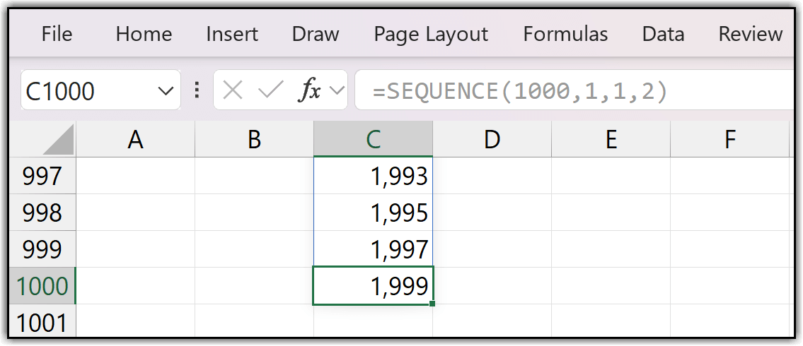 =SEQUENCE(1000,1,1,2)