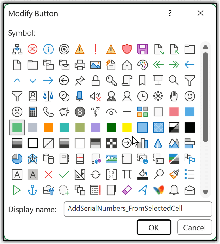After that, select the same macro on the right side and click Modify. Here, you can assign an icon that helps you identify this macro as one used for serial numbers.