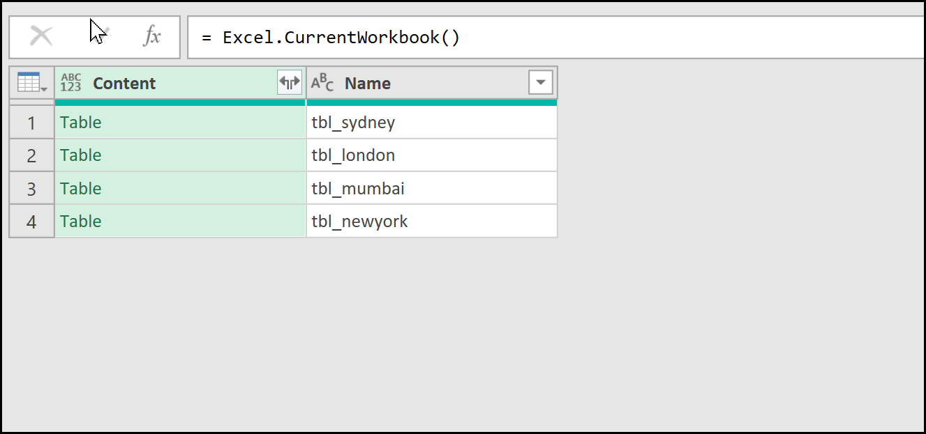 Once you type this formula and press Enter, Power Query will instantly pull data from all the tables available in your current workbook.