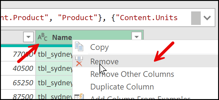 If you do need the table names, you can skip this step and move on to the next one. To delete this column, simply right-click on the column header and select the Remove option.