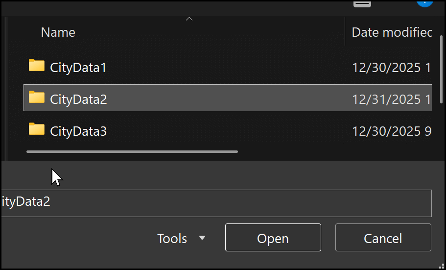 From there, I’ll select From File and then From Folder. Next, I’ll choose the folder named CityData2, which is where all the files are stored. You can download these files using the link shared in the sample file section.