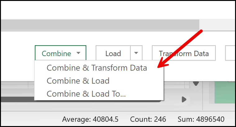 Click on Combine, and then choose Combine and Transform Data.