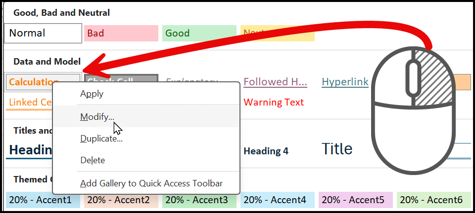 Modify the Calculation Style in Excel (Any Other Cell Style)